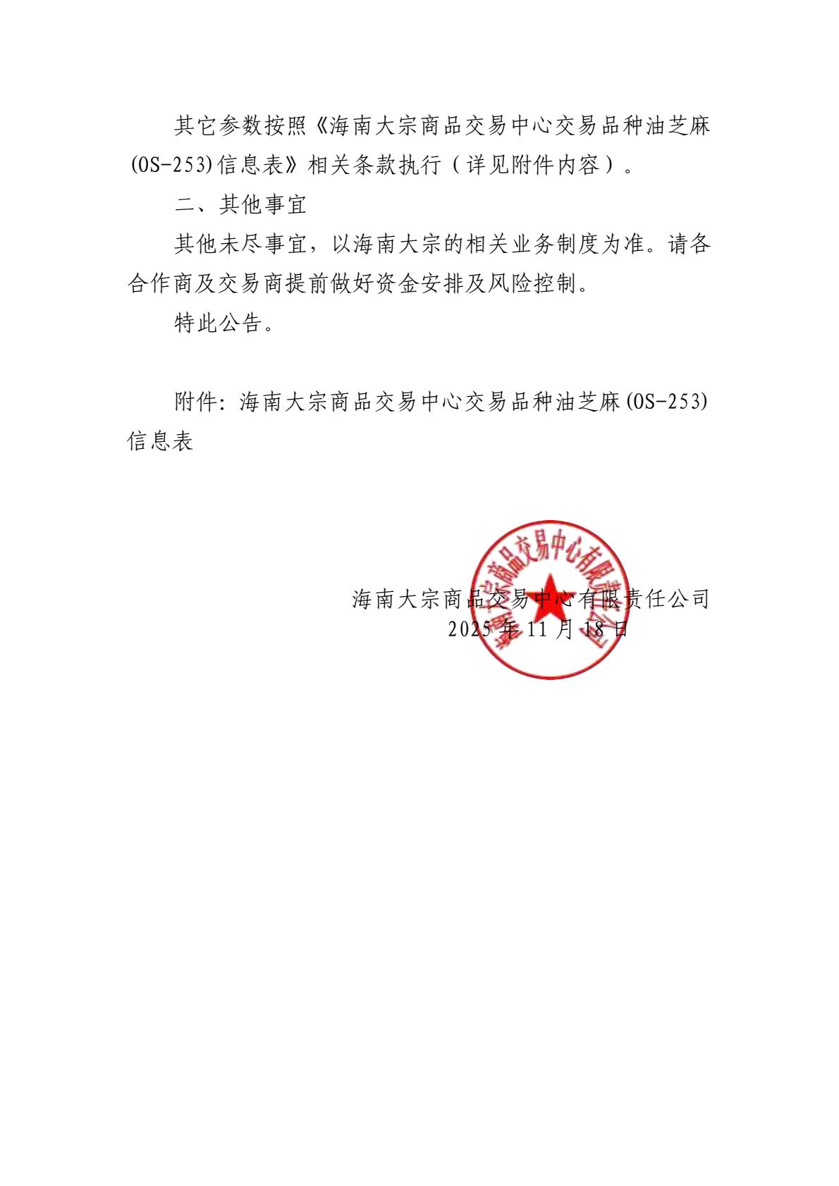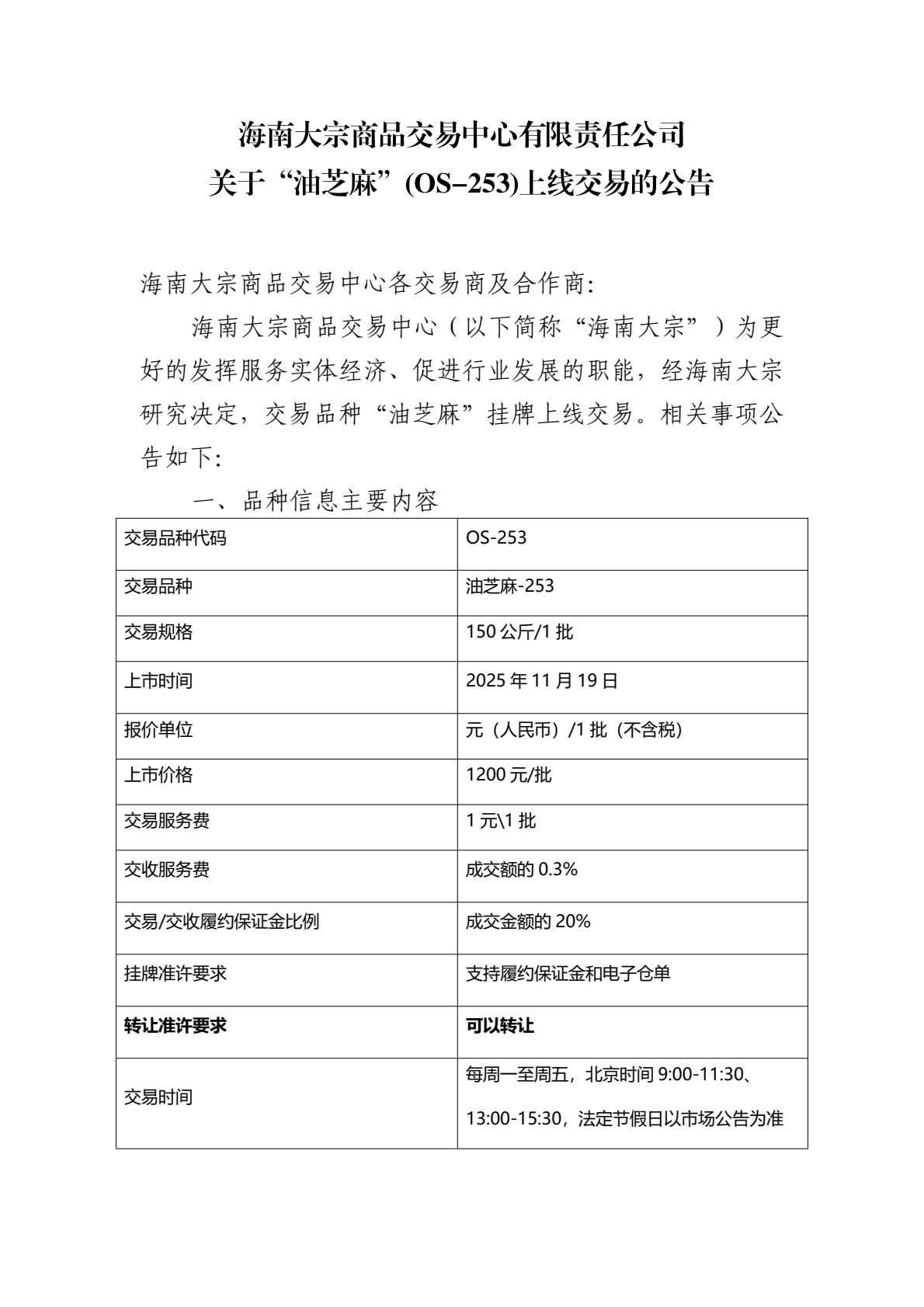 - 關于“油芝麻”(OS-253)上線交易的公告