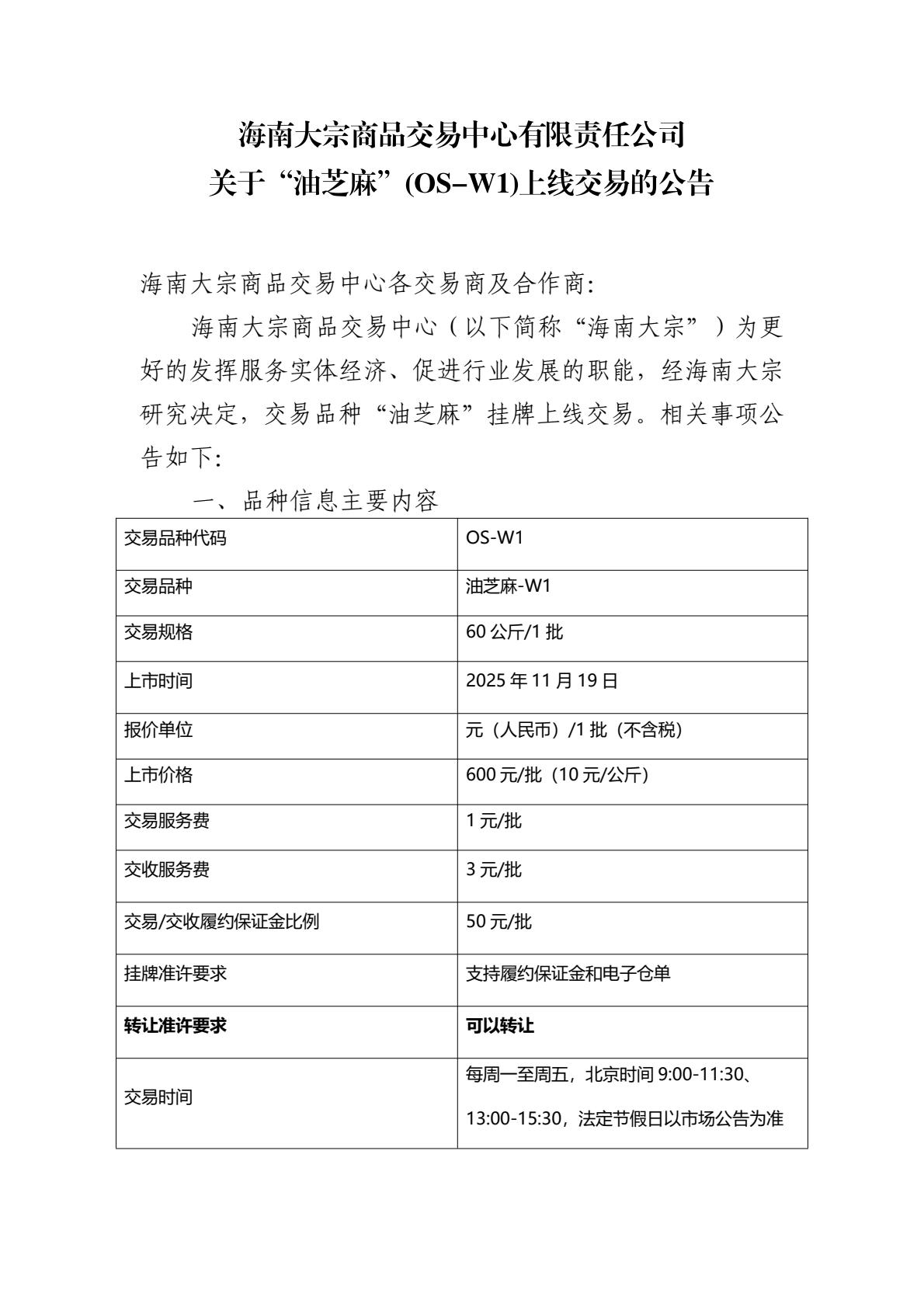 - 關于“油芝麻”(OS-W1)上線交易的公告